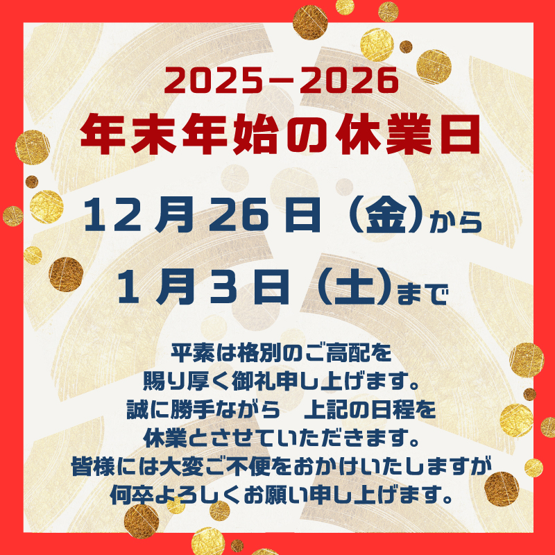 年末年始の休業日の