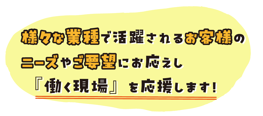 名入れ刺繍・プリントなどの各種加工サービスや法人向け決済サービス対応、お困りのことに対すしての対応など、お客様に喜んでいただけるサービスをお届けしております。